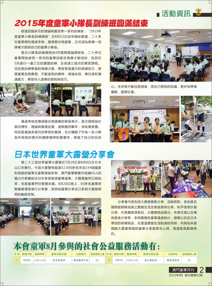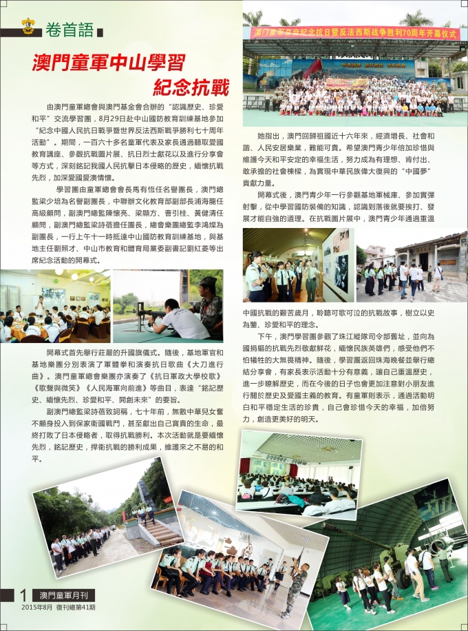 澳門童軍月刊-2015年8月復刊總第41期