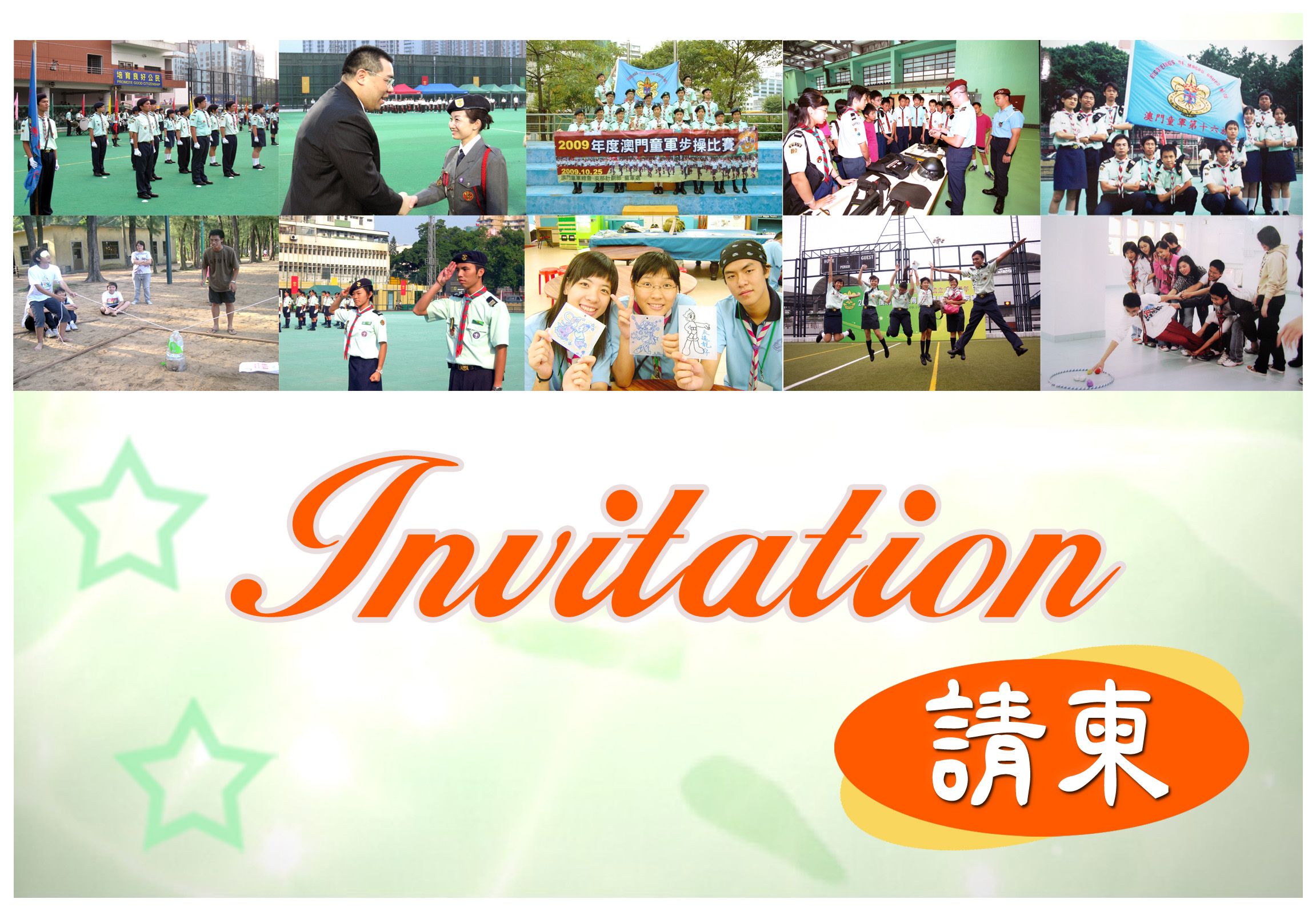 聖公會澳門蔡高中學屬下之澳門童軍第十六旅謹定於二零一零年一月三十一日(星期日)下午二時半假聖公會澳門蔡高中學舉行「澳門童軍第十六旅成立十六週年慶典」。現特惠函奉達,誠邀 台端蒞臨慶典,以光會場。倘蒙 惠允,不勝榮幸。