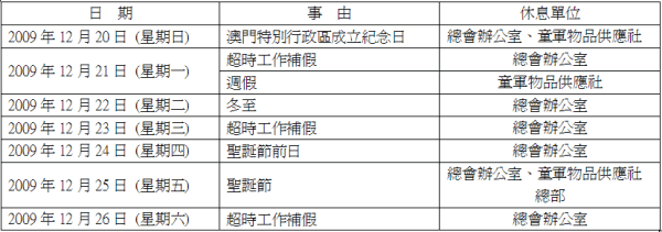 根據﹝第(辦佈告):2009/009號﹞及﹝第(物佈告):2009/008號﹞,總會辦公室和童軍物品供應社將於下列日期休息。