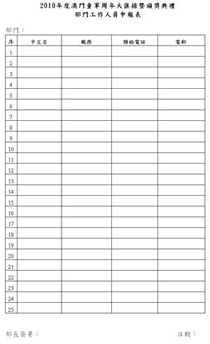 部門工作人員申報表: